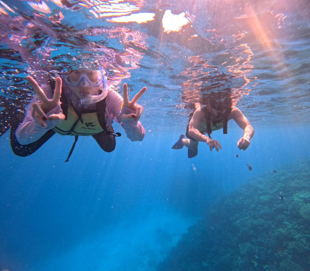 日焼けが痛そうな旦那様と泳ぎが達者すぎる奥様とシュノーケリング✨