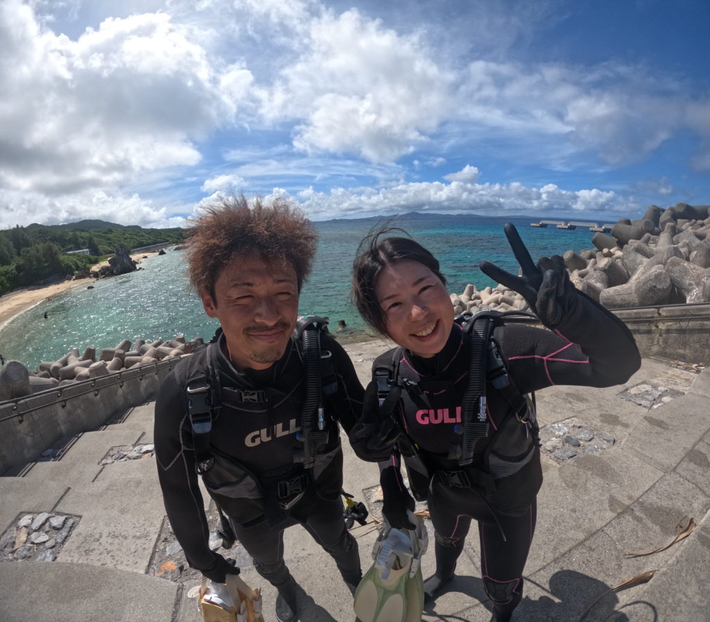 2日目はビーチダイビングに行ってとんでもない数のお魚に囲まれて幸せでしたね〜♪