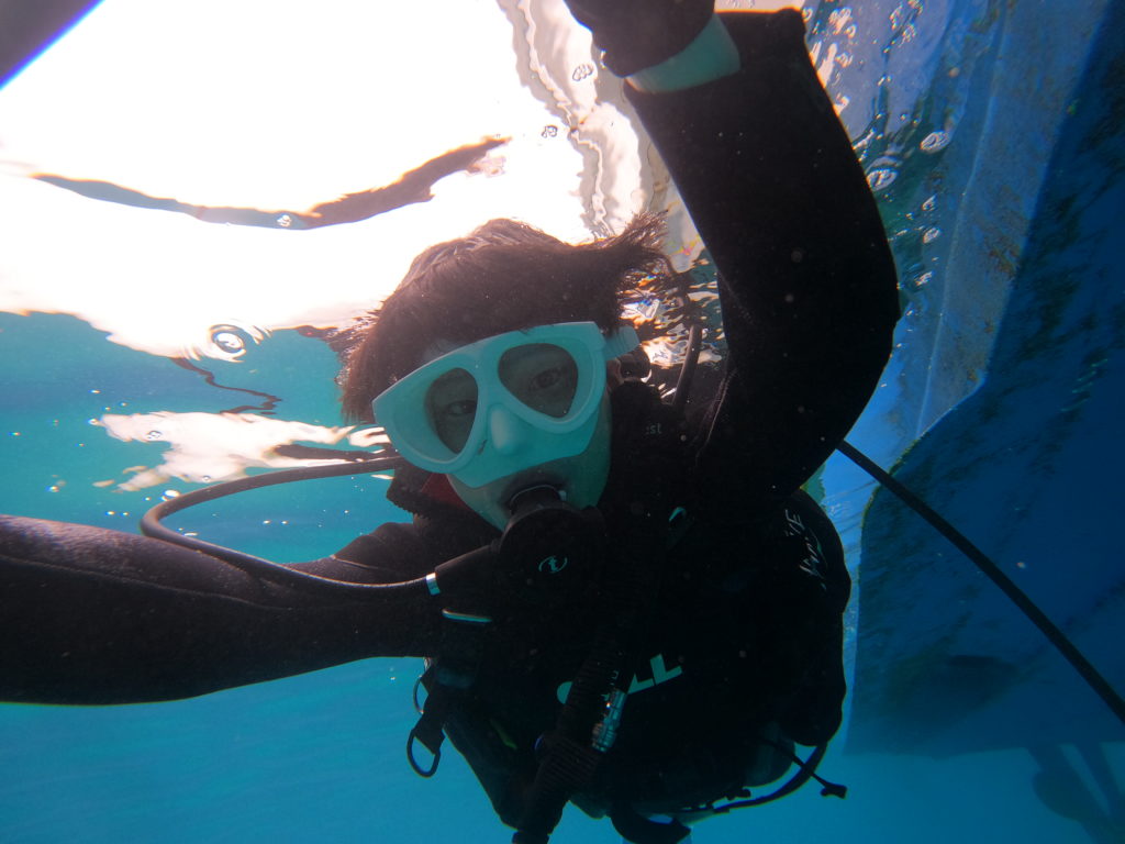 潜ったら感動の世界ですね!さっきまで緊張して僕のこと見てたのに魚に夢中😂