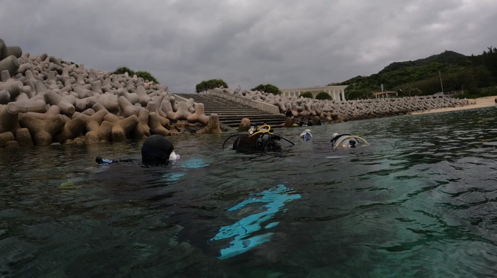 【午後】 海の浅場で練習、海洋講習①②(ビーチダイブ講習)